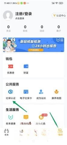 3、登录后选择“我的”选项,点击“生活服务”中的“社保认证”功能。