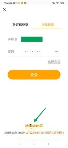 2、如果是新用户,点击注册,输入手机号及验证码,并设置密码,牢记密码以便下次登录。