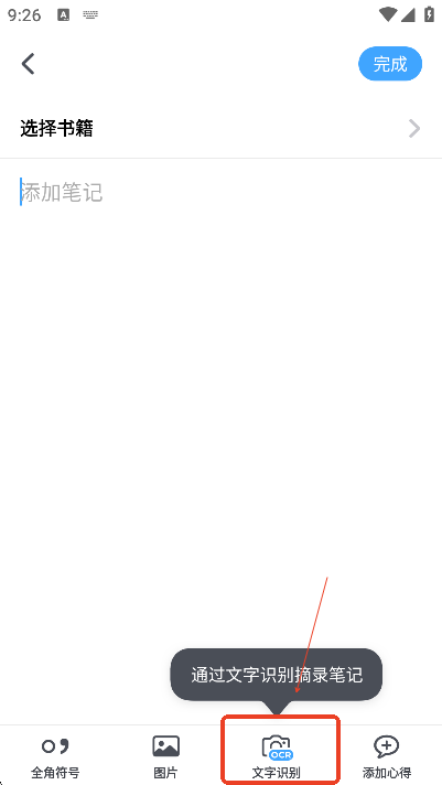 然后点击“文字识别”摘录笔记