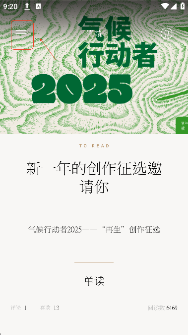 3、如何查看今天的单向历:在单读app的主页面,点击左上角的三条杠按钮,进入功能栏目,点击底部的单向历,就可以看到当天的单向历了。