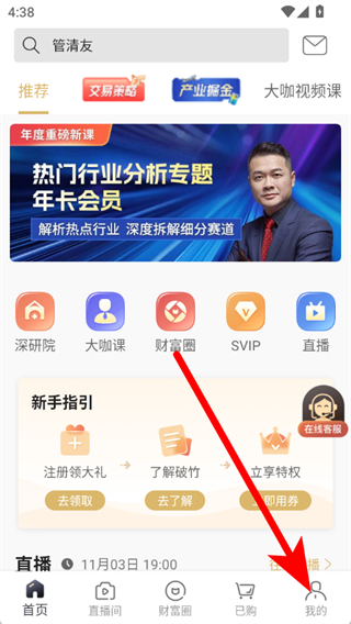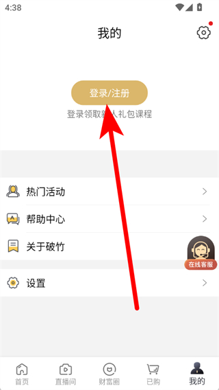 1. 开启破竹知识平台,轻点底部导航栏中的“我的”,进而进入个人中心。