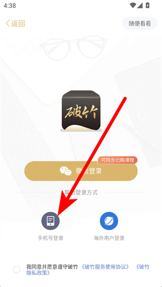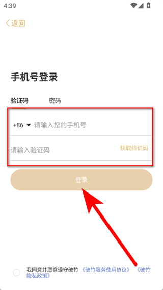 3、于登录选择页面,点击“手机号登录”选项,随即进入手机号登录页面。