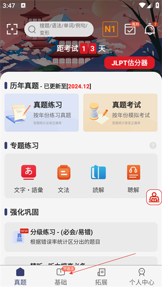 1. 进入首页后,轻点底部的【基础】,就能进入基础训练界面。