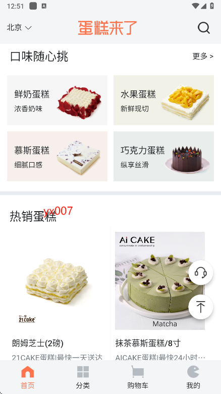 2、往下滑动可以口味查看蛋糕,也能看到当前热销的蛋糕种类