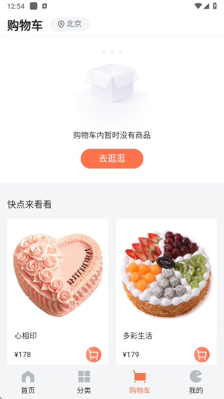5、用户挑选后并加入购物车的蛋糕可以在这里面看到