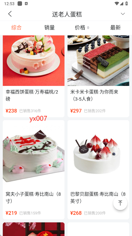 4、比如点击送老人,可以看到里面的蛋糕都是寿桃主题等适合老人的主题蛋糕
